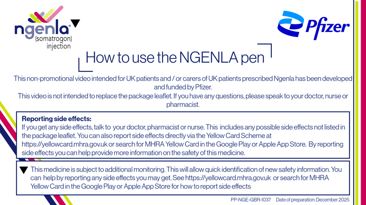 This website is intended for use by patients prescribed Ngenla ▼ (somatrogon) in the UK, and has been developed and funded by Pfizer Ltd.